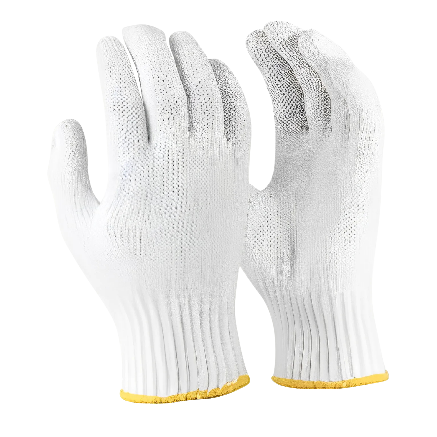 Slip-resistant dotted gloves, enhanced grip and comfort for safer handling tasks.