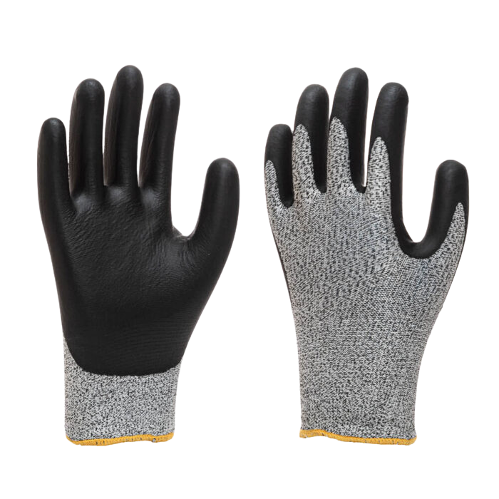 PU-coated gloves, excellent grip for metal handling, suited for manufacturing and automotive work.