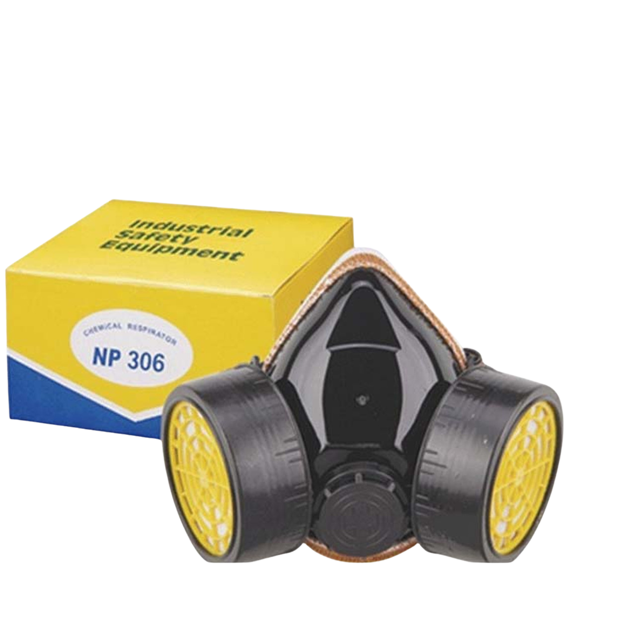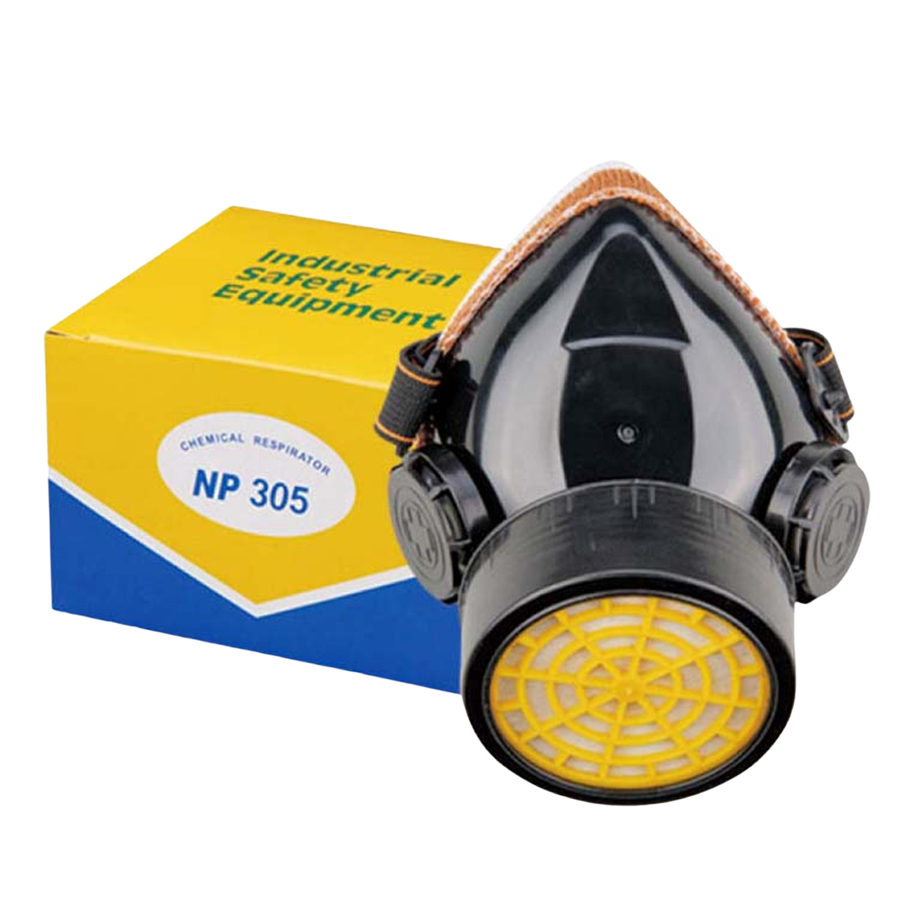 Reusable half-mask respirator, dual cartridges, organic vapor protection, comfortable adjustable fit.