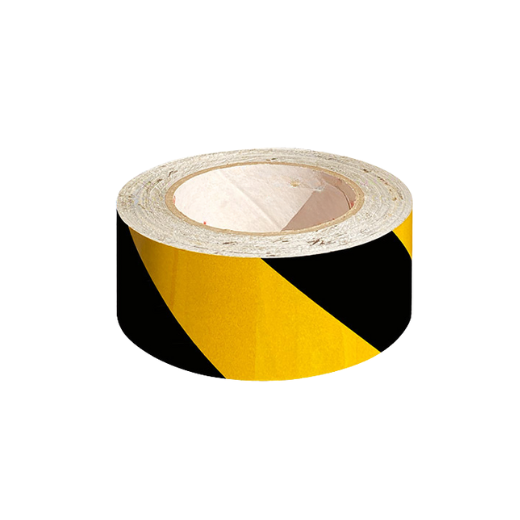 Yellow and black reflective adhesive tape improves visibility, ideal for marking hazardous areas, road signs, and safety zones.